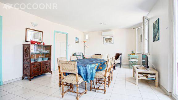 - Une pièce de vie de 28 m² avec TV, un coin salon et un coin repas