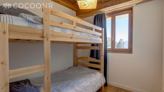 - Chambre secondaire : lits superposés (90 x 190cm).