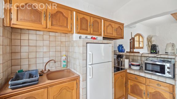 - Une cuisine équipée avec notamment : bouilloire électrique, four à micro-ondes, plaques de cuisson, lave-linge...