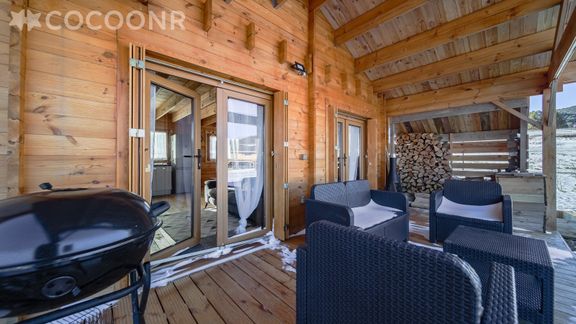 - Terrasse couverte d'environ 10 m², exposée est, avec barbecue et mobilier de jardin, d'où vous pourrez profiter s'une superbe vue sur le lac et la montagne.