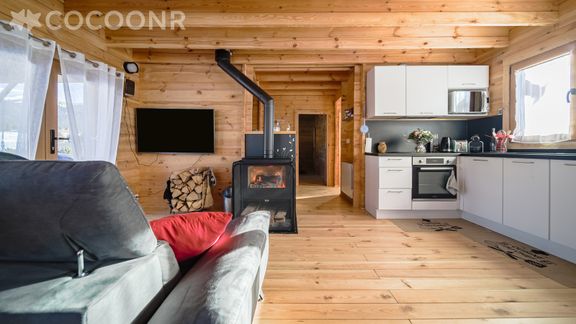 Cuisine ouverte sur le salon entièrement équipée : frigidaire, four, micro-ondes, plaques,bouilloire, grille-pain, cafetière à dosettes Nespresso et une machine à café/cappuccino Nescafé Dolce Gusto, appareil à raclette et à fondue... Le chalet ne dispose pas de lave-vaisselles.