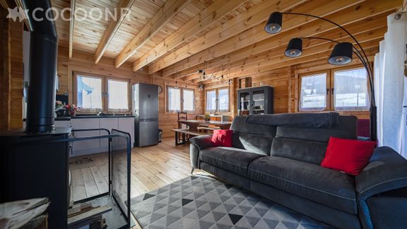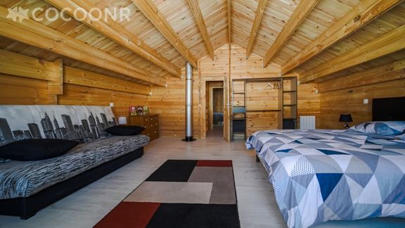 Le chalet pouvant accueillir jusqu'à 10 personnes se compose d'une grande pièce de vie avec coin salon autour du poêle à bois, une cuisine ouverte équipée, trois chambres, deux salles d'eau avec douche. Jolie terrasse et grand jardin ouverts sur la nature. Parking extérieur. Draps et serviettes inclus. Idéal pour un séjour reposant en été comme en hiver !