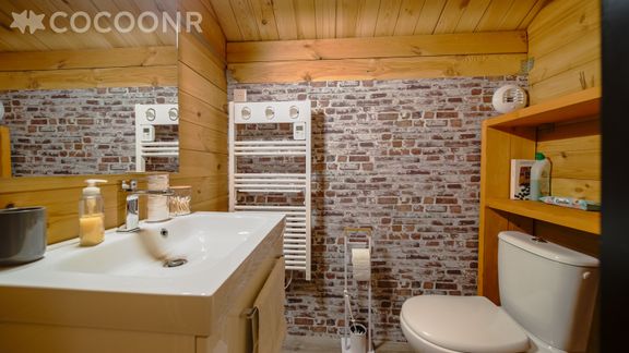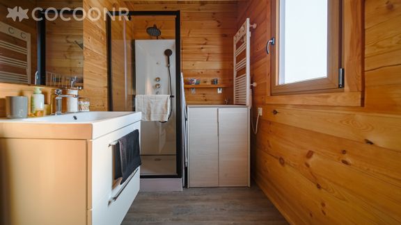 - Salle d'eau avec douche, lavabo, WC, sèche serviettes