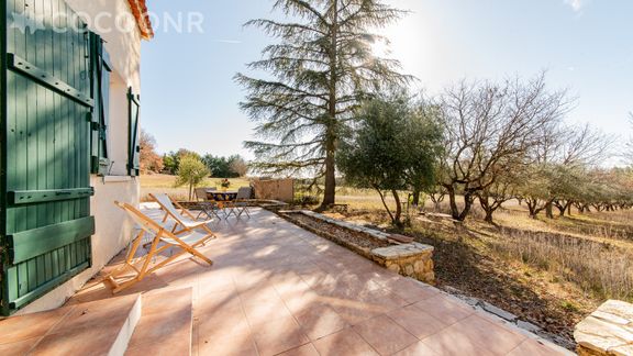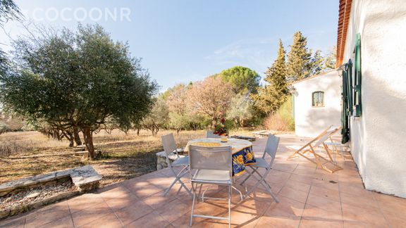 - Un grand jardin d'oliviers et chênes de 5 000 m² rempli de thym sauvage, avec terrasse de 70 m² exposée plein sud, et mobilier pour profiter des beaux jours. Un accès direct à la forêt et une vue sur les champs avoisinants.