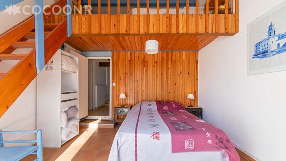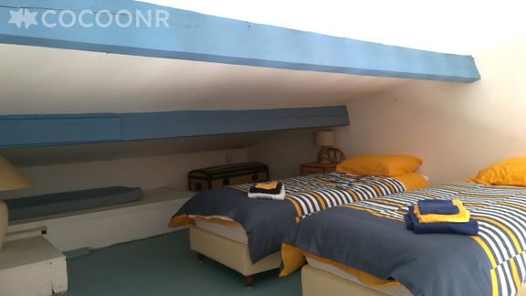 - Chambre 3: en mezzanine, vous trouverez deux lits simples avec une chambre qui communique avec un lit double (140x190)