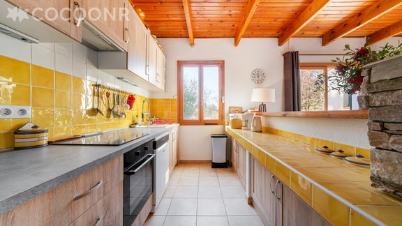- Une cuisine équipée avec notamment : bouilloire électrique, cafetière filtre, four, four à micro-ondes, grille-pain, lave-vaisselle, 4 plaques de cuisson...