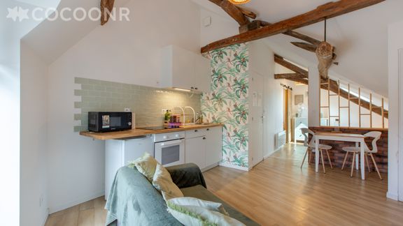 L'agence Cocoonr/Book&Pay vous propose à la location, sur la commune de Romorantin-Lanthenay, ce charmant studio d’une superficie de 28 m² et pouvant accueillir jusqu’à 2 voyageurs. Situé au 2ᵉ étage (sans ascenseur), il se compose d’une jolie pièce à vivre de 12 m², d'une cuisine ouverte équipée, d’un espace nuit et d'une salle d'eau. Wifi (fibre optique), draps et serviettes inclus, nous n’attendons plus que vous !