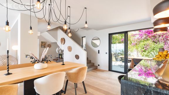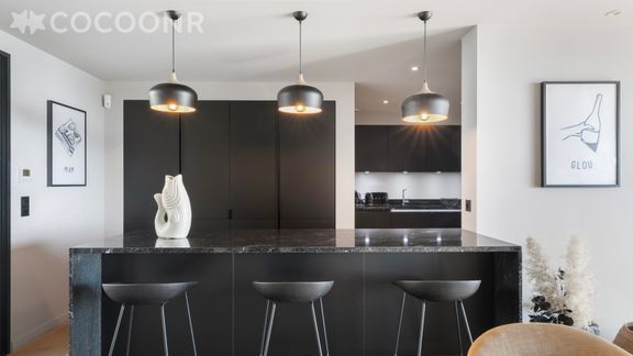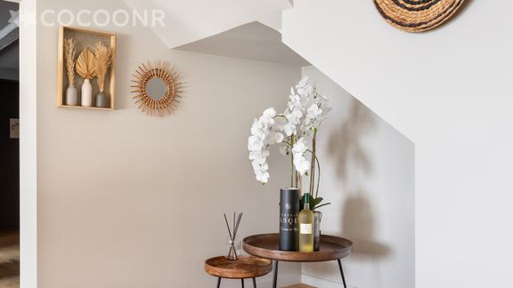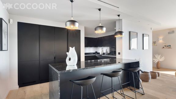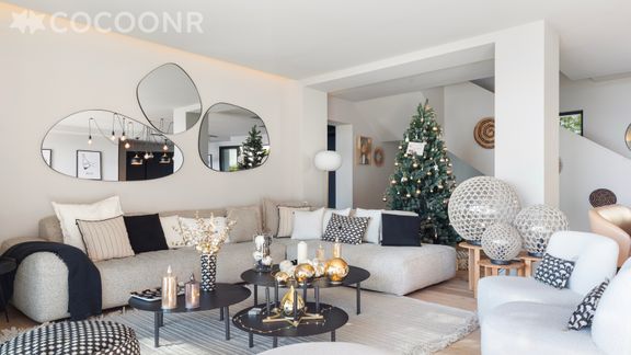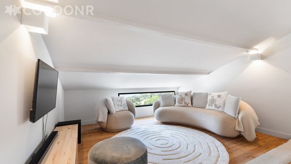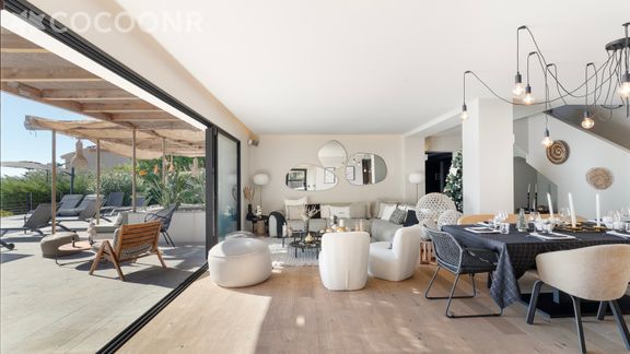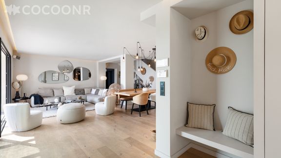 - Une pièce de vie de 81 m² à la décoration soignée avec salon, TV, table à manger