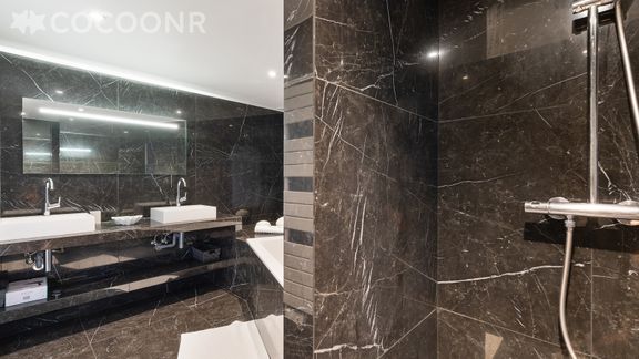 - Chambre 1 : un lit king-size (180x200) et grande salle de bain attenante avec douche et baignoire