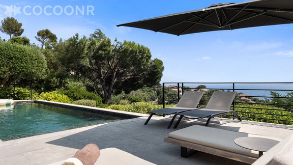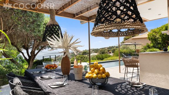 L'agence Cocoonr/Book&Pay vous propose à la location, à Roquebrune-sur-Argens, cette magnifique villa climatisée avec piscine, d’une superficie de 295 m², pouvant accueillir jusqu’à 14 voyageurs. Avec sa vue sur le Golfe de Saint-Tropez et située à proximité de la plage, elle est composée d’une belle pièce à vivre, d'une cuisine équipée, de cinq chambres chacune avec sa salle de bain privative, et vous pourrez profiter d’un jardin d’environ 1 200 m². Wifi (fibre optique), draps et serviettes inclus, nous n’attendons plus que vous !
