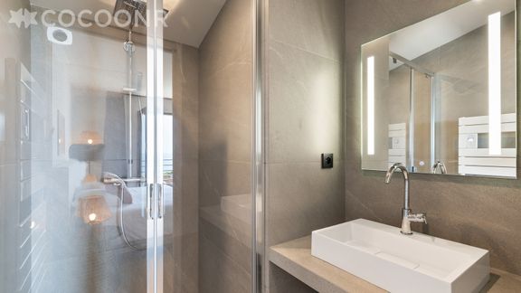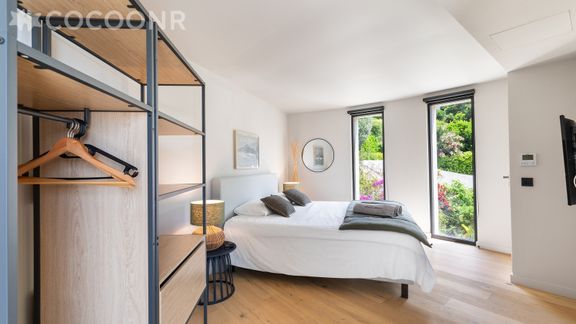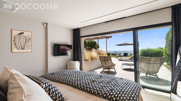 - Chambre 3 : un lit king-size (180x200), salle d'eau attenante avec douche et accès terrasse avec vue sur la mer