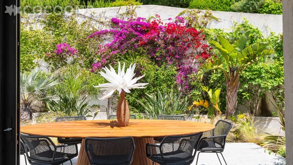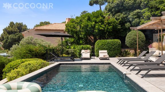 - Deux jardins d'une superficie de 1 200 m² pour vos moments de détente. Devant la maison, vous profiterez des pins parasols et des essences très odorantes telles que bougainvilliers, pins, citronniers, mandariniers. La maison dispose de plusieurs espaces ombragés suivant le moment de la journée. L'ensemble du mobilier extérieur est à disposition (transats, bains de soleil, fauteuils) et vous pourrez profiter d'une table de ping-pong et d'un terrain de pétanque.