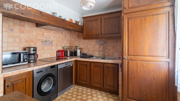 - Une cuisine équipée avec notamment : bouilloire électrique, four à micro-ondes, grille-pain, lave-vaisselle, plaques de cuisson...
