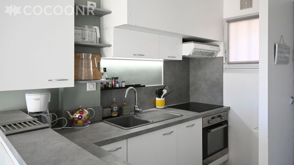 - Une cuisine ouverte équipée avec notamment : bouilloire électrique, four, four à micro-ondes, grille-pain, lave-vaisselle, plaques de cuisson...