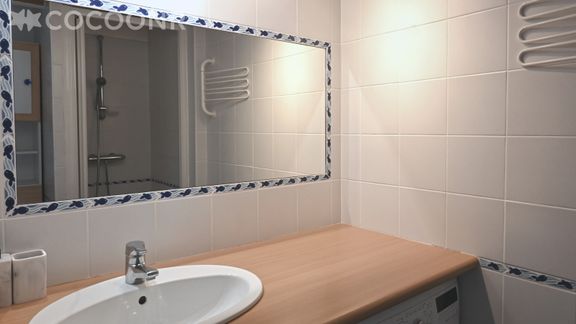 - Une salle d'eau avec douche, meuble vasque et machine à laver