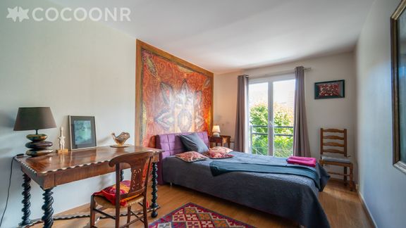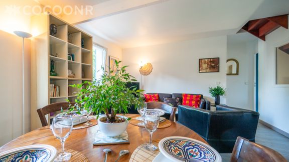 Nous vous proposons à la location, à Rungis, cet appartement d’une superficie de 70 m² et pouvant accueillir jusqu’à 6 voyageurs (idéal pour 4 adultes avec 2 enfants). Situé au 1er étage (sans ascenseur) d'une jolie maison aux volets bleus au coeur du village et dans son nid de verdure. Il se compose d’une pièce à vivre de 30 m², cuisine ouverte équipée, de trois belles chambres, deux salles de bain (avec baignoire). Wifi, draps et serviettes inclus, nous n’attendons plus que vous !