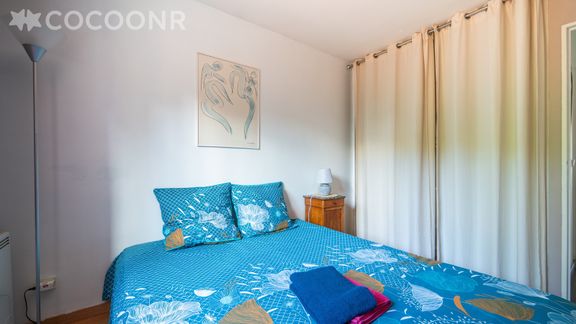 - Chambre 2 : un lit queen-size (160×200), un bureau