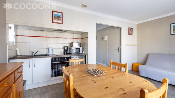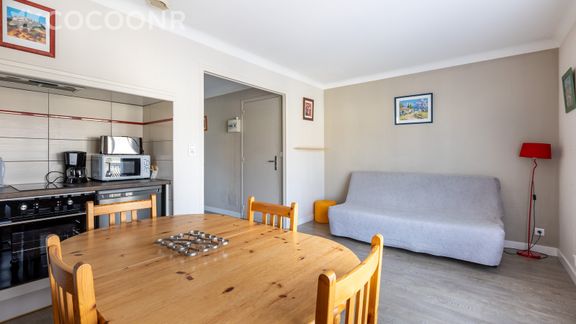 - Une pièce de vie de 20 m² avec TV, canapé lit (1 place), coin repas...