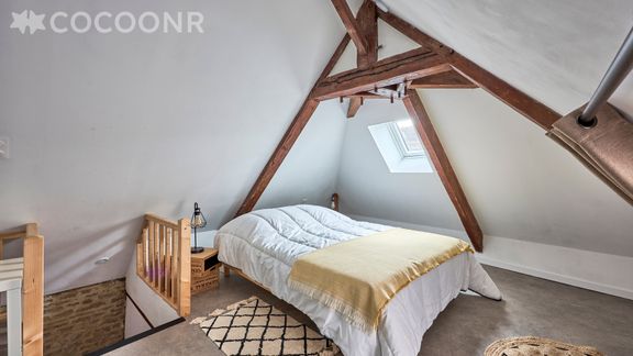 - La chambre du deuxième étage est accessible par un escalier étroit et pentu.