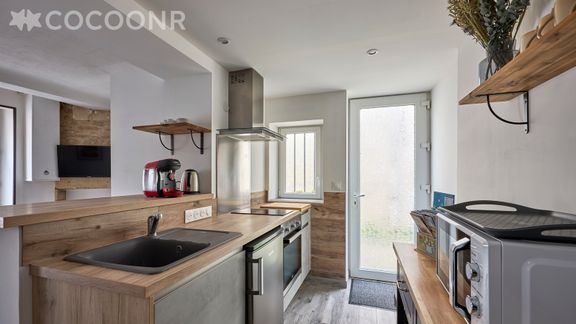 - Une cuisine équipée avec notamment : bouilloire électrique, four, four à micro-ondes, grille-pain, plaques de cuisson...