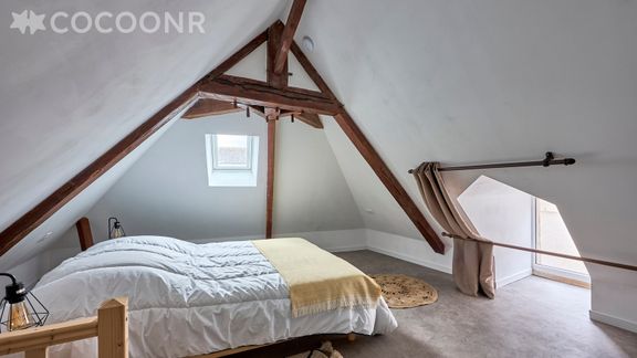 - Chambre 2 mansardée sous combles : un lit double (140×190)