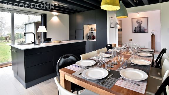 - Une cuisine équipée avec notamment : bouilloire électrique, four, grille-pain, lave-vaisselle, plaques de cuisson...
