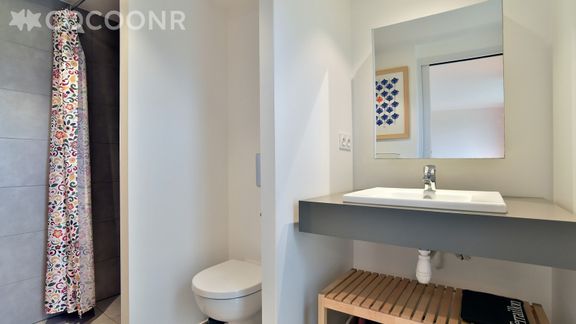 - Chambre 1 : avec un lit double (140×190) et une salle d'eau attenante avec douche et WC