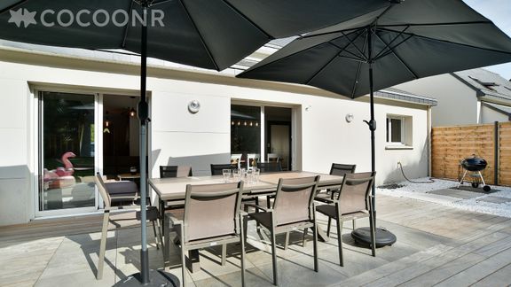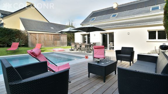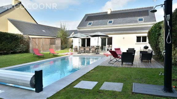 L'agence Cocoonr vous propose à la location, à Saint-Briac-sur-Mer, cette charmante maison à moins d’un kilomètre de la plage, avec piscine, d’une superficie de 110 m² et pouvant accueillir jusqu’à 8 voyageurs. Elle est composée d’une jolie pièce à vivre de 48 m², d'une cuisine équipée, de quatre belles chambres, de deux salles de bain (avec douche et baignoire) et vous pourrez profiter d’un jardin d’environ 300 m². Wifi (fibre optique), draps et serviettes inclus, nous n’attendons plus que vous !