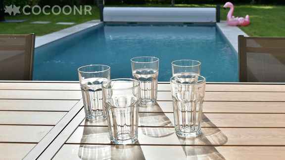 - Une piscine privée et chauffée de 8m×4m, ouverte du 1er mai au 30 septembre et sécurisée par un volet électrique