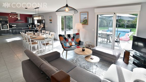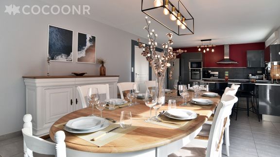 - Une pièce de vie de 48 m² avec espace salon (TV, canapé, fauteuils) et salle à manger
