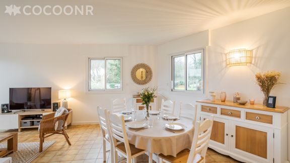 - Une pièce de vie de 30 m² avec TV, canapé et espace salle à manger