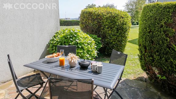 - Une terrasse orientée Sud-Est avec salon de jardin à disposition pour profiter des beaux jours.