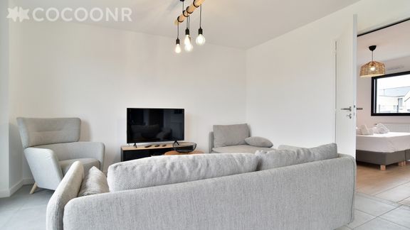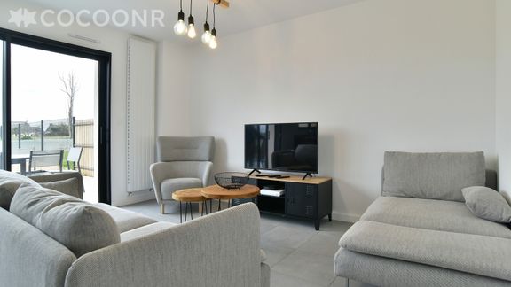 - Une pièce de vie de 38 m² avec TV, canapés...
