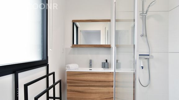 - Un beau jardin clos de 170 m², doté d'un robinet extérieur équipé d’une douchette et de caillebotis.