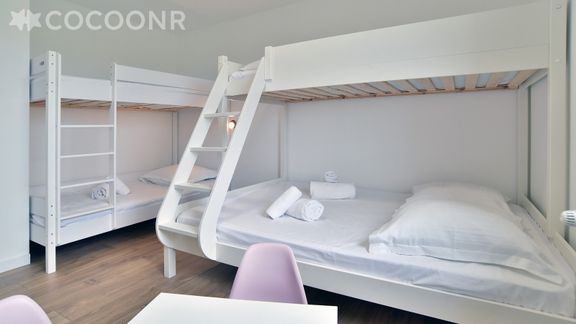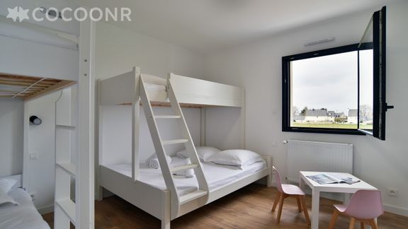 - Chambre 4 : avec deux lits superposés (1 lit superposé 90x180 (2 couchages) ; et 1 lit superposé 90*190 double 140x190 (3 couchages))