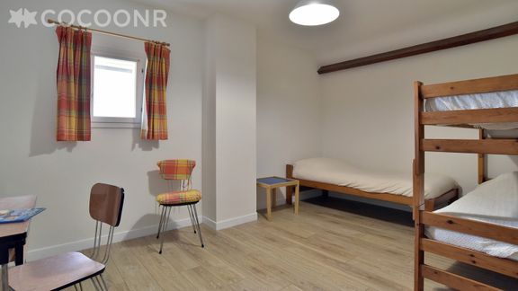 - Chambre 3 : avec 1 lit superposé (2 couchages, (90×200)) ainsi qu'un autre lit simple (90×200), une petite armoire et un espace bureau