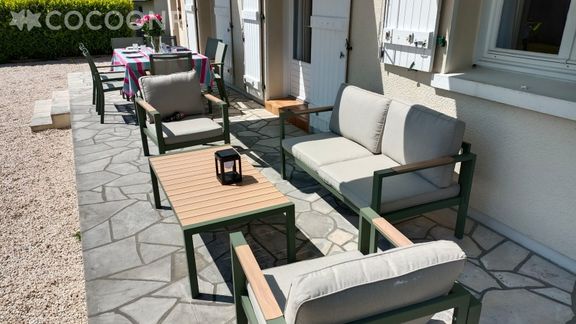 - Une terrasse de 25 m² avec mobilier (table et chaises, salon de jardin avec fauteuils) pour profiter des beaux jours