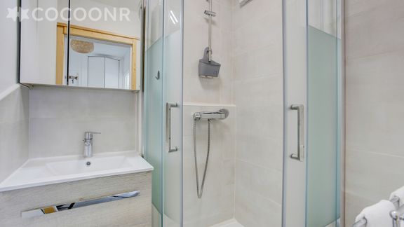 - Une salle d'eau avec douche et lavabo