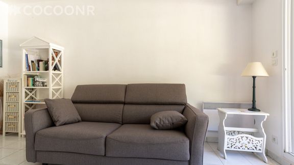 - Une pièce de vie de 18 m² avec TV, canapé convertible (double) et espace repas.