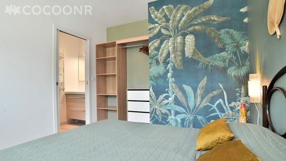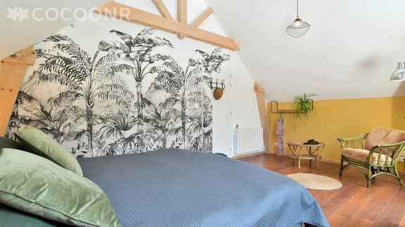 - Une chambre parentale avec un lit queen-size (160x200) et un coin bureau