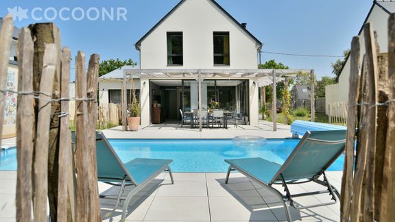L'agence Cocoonr/Book&Pay vous propose à la location, sur la commune de Saint-Cast-le-Guildo, cette charmante maison contemporaine à moins d’un kilomètre de la plage, avec piscine privative, d’une superficie de 130 m² et pouvant accueillir jusqu’à 8 voyageurs. Elle est composée d’une jolie pièce à vivre de 35 m², d'une cuisine équipée, de quatre belles chambres, deux salles de bain et vous pourrez profiter d’un jardin d’environ 700 m². Nous n’attendons plus que vous !