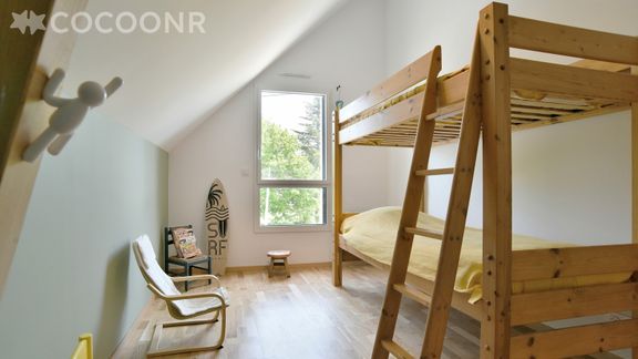 - Une chambre avec un lit superposé (deux couchages pouvant convenir pour des adultes)