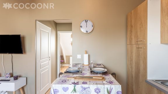 Nous vous proposons à la location, sur la commune de Saint-Coulomb, ce charmant appartement sous comble, traversant d'Est en Ouest d’une superficie de 33 m² et pouvant accueillir jusqu’à 2 voyageurs. Situé au 2e étage (sans ascenseur), il se compose d’une jolie pièce à vivre de 19 m², d'une cuisine ouverte équipée, d’une belle chambre, d'une salle d'eau et vous pourrez profiter d’un jardin commun d’environ 180 m². Wifi, draps et serviettes inclus, nous n’attendons plus que vous !