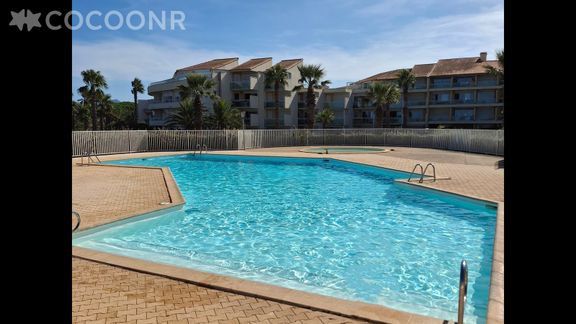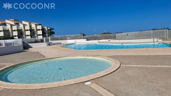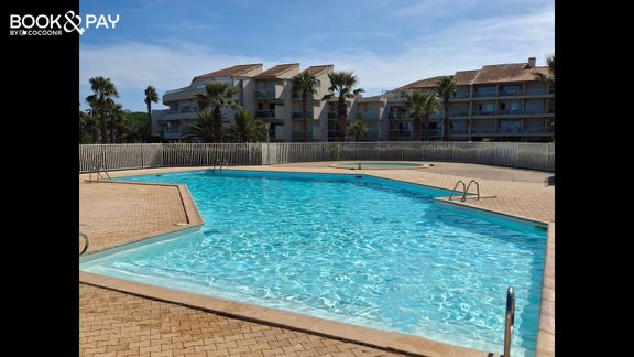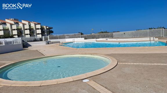 - La piscine, accessible uniquement par des doubles-portails, comprend un grand bassin et un petit bassin peu profond pour enfants. Ouverte de mai à octobre, elle est fermée la nuit (avec couverture) et surveillée en haute saison. L'accès est réservé aux résidents avec une clé et la piscine n’est pas chauffée.