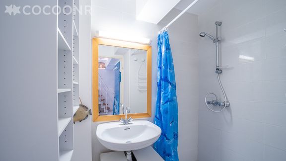 - Chambre 2 : un lit double (140×190) et canapé-lit double, avec balcon privé offrant une vue sur la mer et les montagnes.