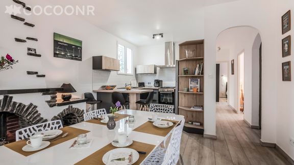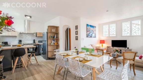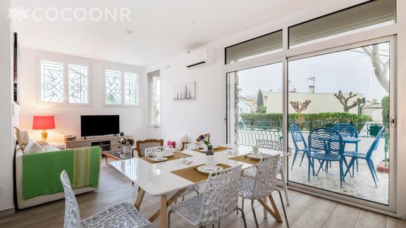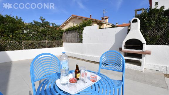 L'agence Cocoonr/Book&Pay vous propose à la location, à seulement 150 m de la plage de Saint-Cyprien, cette charmante maison de 80 m² classée 4*, de plain-pied et climatisée, pouvant accueillir jusqu’à 5 voyageurs. Elle est composée d’une jolie pièce à vivre de 20 m², d'une cuisine ouverte équipée, de trois belles chambres et d'une salle d'eau. Vous pourrez profiter d'une terrasse et d'un espace extérieur tout autour de la maison. Wifi (fibre optique). Serviettes, draps, torchons et ménage en supplément.