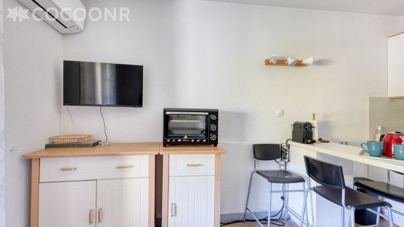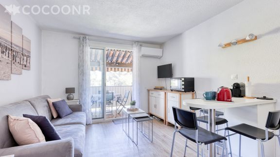L'agence Cocoonr/Book&Pay vous propose à la location, à Saint-Cyr-sur-Mer, cet appartement climatisé à moins d’un kilomètre de la plage, d’une superficie de 23 m² et pouvant accueillir jusqu’à 2 voyageurs. Situé au 1ᵉʳ étage (sans ascenseur), il se compose d’une jolie pièce à vivre de 15 m², d'une kitchenette équipée et d'une salle d'eau (avec douche). Wifi inclus, nous n’attendons plus que vous !
