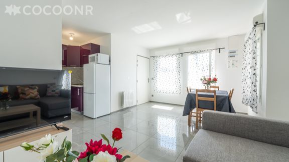 L'agence Cocoonr/Book&Pay vous propose à la location, à Saint-Denis, cet appartement d’une superficie de 48 m² et pouvant accueillir jusqu’à 4 voyageurs. Situé au 1er étage (sans ascenseur), il se compose d’une pièce à vivre de 20 m², d'une cuisine équipée, d’une chambre, d'une salle d'eau et vous pourrez profiter d’un espace extérieur partagé d’environ 19 m². Wifi (fibre optique), draps et serviettes inclus, nous n’attendons plus que vous !