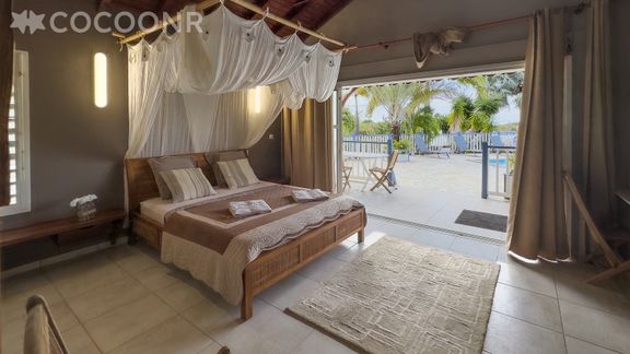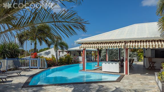 L'agence Cocoonr/Book&Pay vous propose à la location, à Saint-François, cette villa à moins d’un kilomètre de la plage, avec piscine, d’une superficie de 170 m² et pouvant accueillir jusqu’à 10 voyageurs. La villa de plain pied est composée d’une pièce à vivre de 70 m², d'une cuisine équipée, de trois chambres, de trois salles d'eau (avec douche) et vous pourrez profiter d’un jardin d’environ 1 000 m² avec sa dépendance composée d'une cuisine extérieure et de ses deux chambres. Wifi (fibre optique), draps et serviettes inclus, nous n’attendons plus que vous !