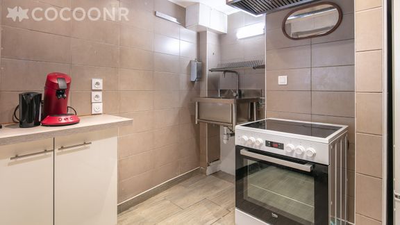 - Une kitchenette équipée avec notamment : bouilloire électrique, four, four à micro-ondes, plaques de cuisson...